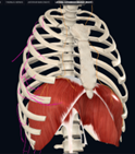 - Kostal (yan) kısım: Transversus abdominis kasının bağlantı noktalarıyla birbirine kenetlenerek altıncı ila yedinci kaburgaların kıkırdaklarına bağlanır.