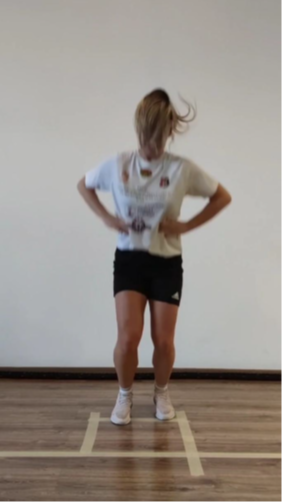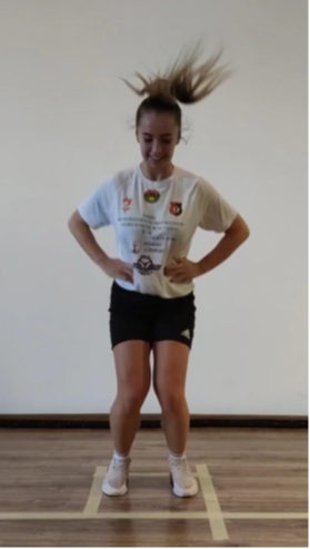Başlangıç pozisyonu: Hasta kalça ve diz eklemlerinden hafifçe bükülmüş bir bacak üzerinde durur, eller kalçaya yerleştirilir.